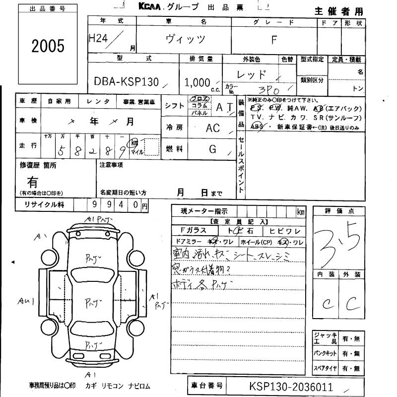 TOYOTA VITZ - лот 2005