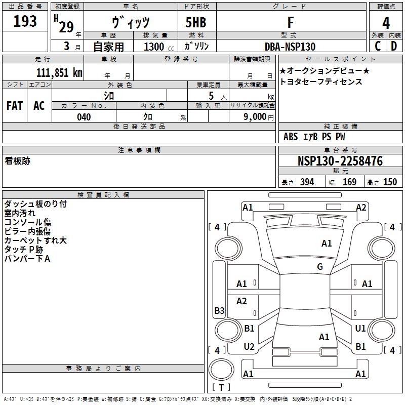 TOYOTA VITZ - лот 193