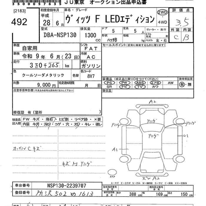 TOYOTA VITZ - лот 492