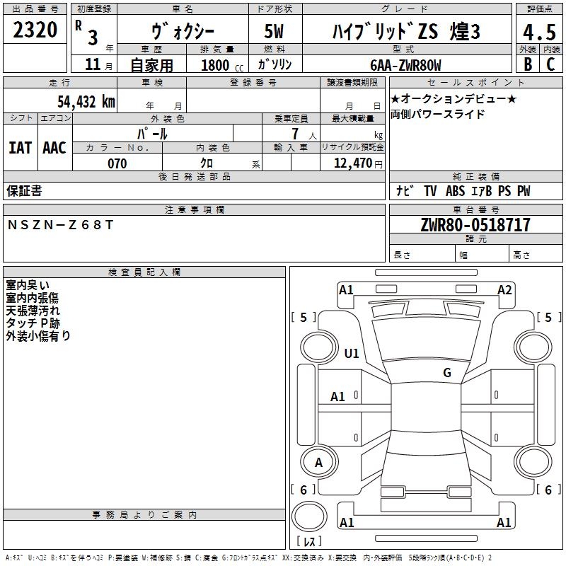TOYOTA VOXY HYBRID ZS KIRAMEKI 3 - лот 2320