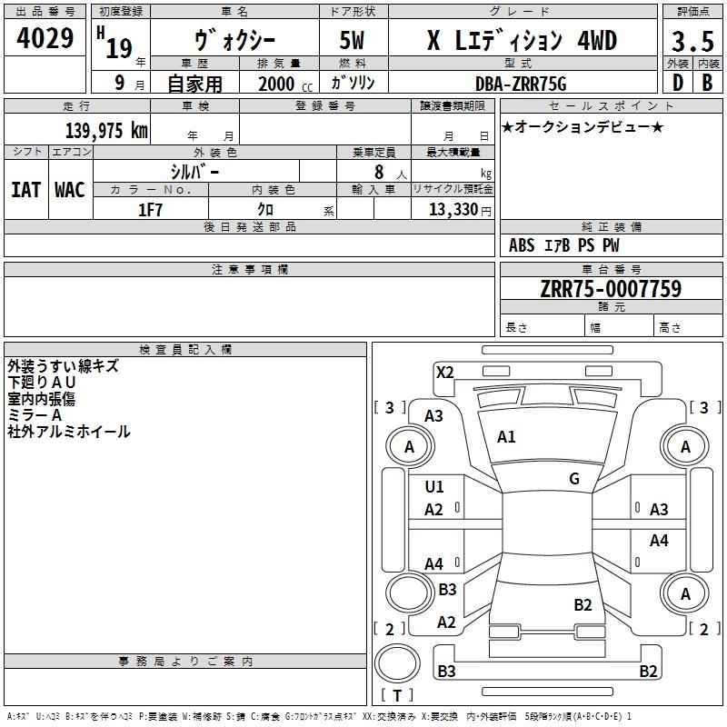 TOYOTA VOXY - лот 4029