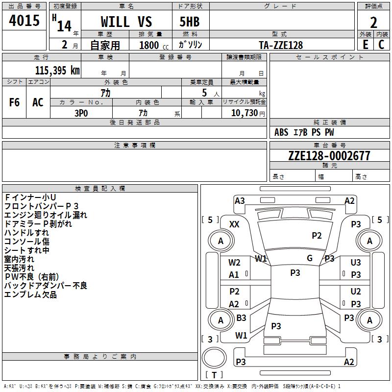 TOYOTA WILL VS - лот 4015