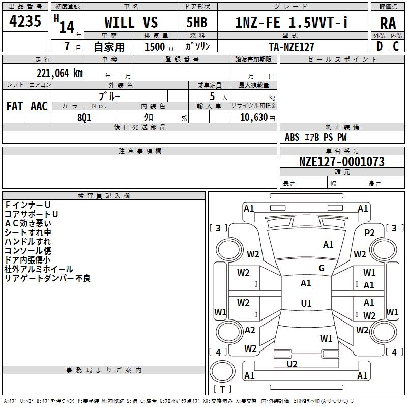 TOYOTA WILL VS - лот 4235