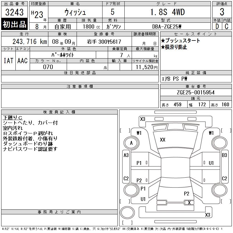 TOYOTA WISH 1.8S 4WD - лот 3243