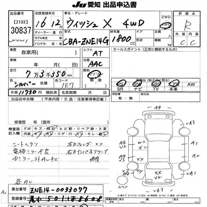 TOYOTA WISH X 4WD - лот 30837