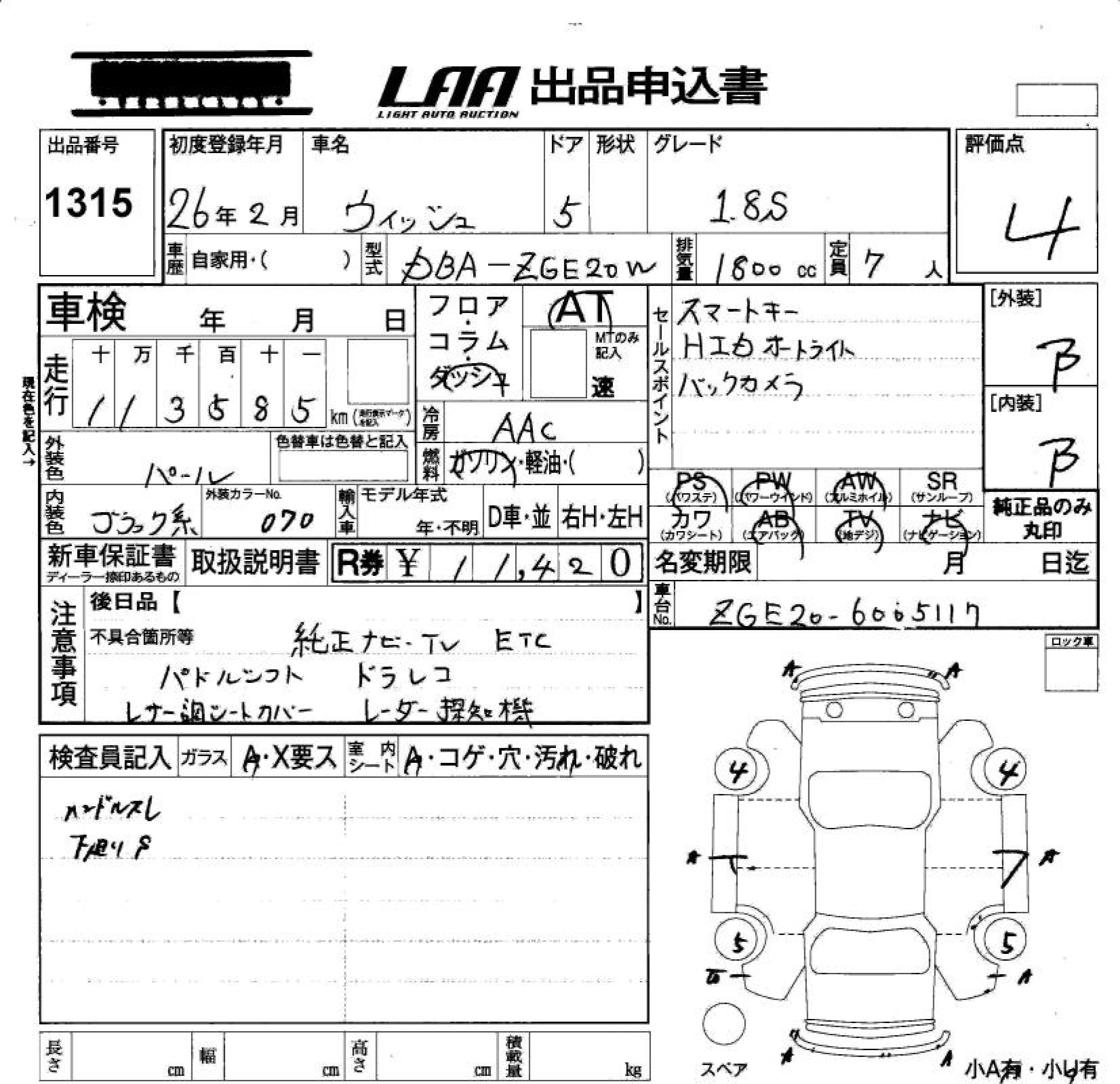 TOYOTA WISH 1.8S - лот 1315
