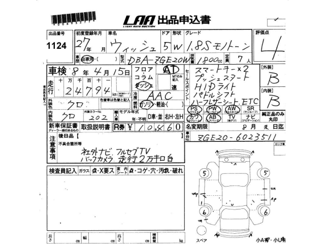TOYOTA WISH - лот 1124
