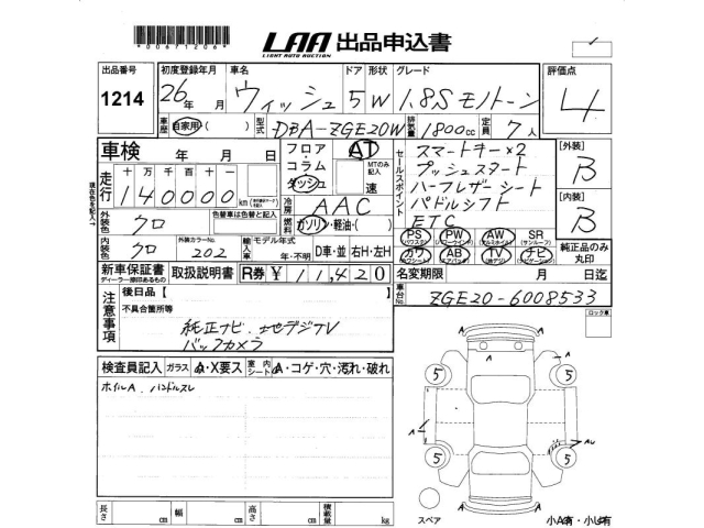 TOYOTA WISH - лот 1214