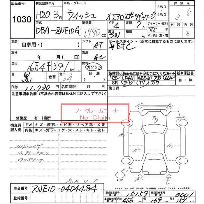 TOYOTA WISH - лот 1030