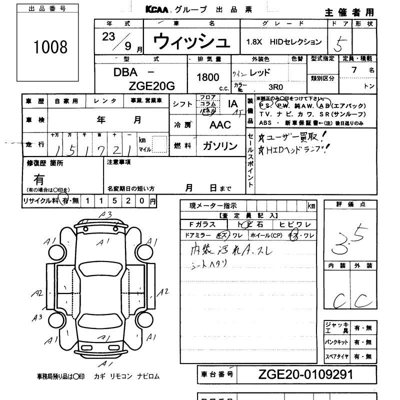 TOYOTA WISH - лот 1008