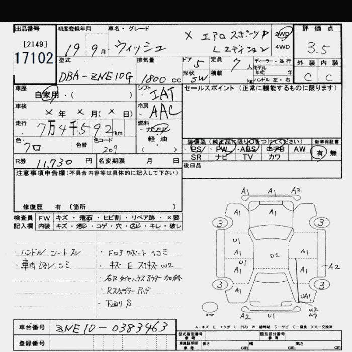 TOYOTA WISH - лот 17102