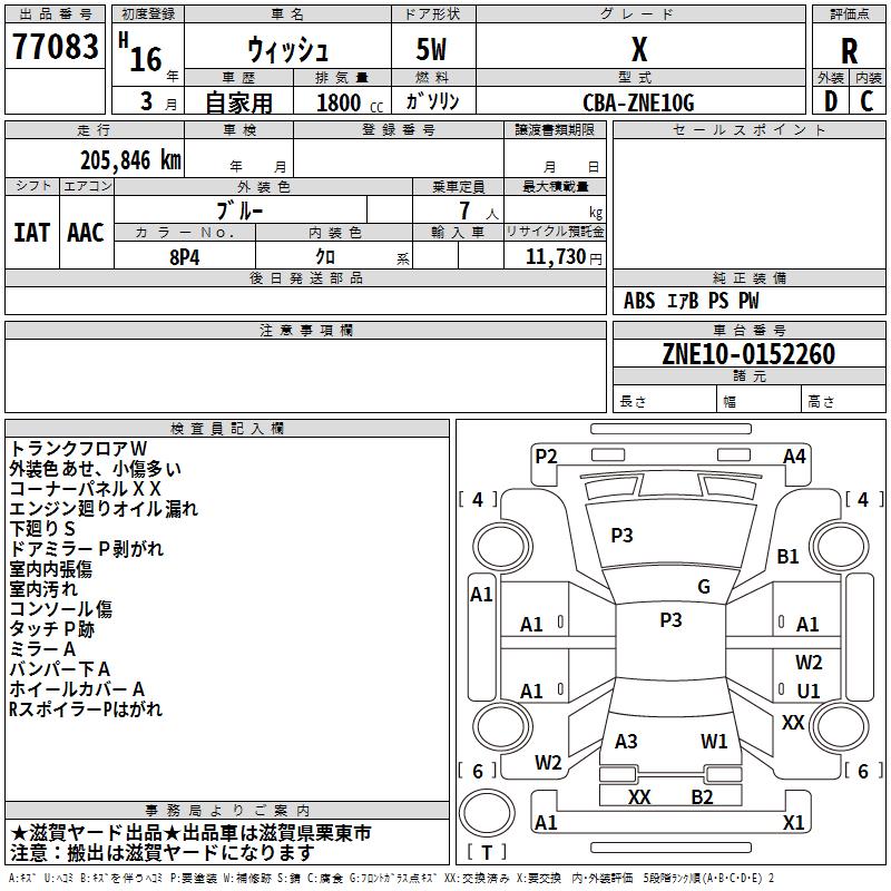 TOYOTA WISH - лот 77083