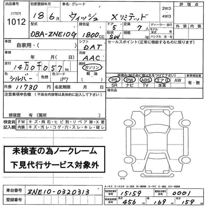 TOYOTA WISH - лот 1012