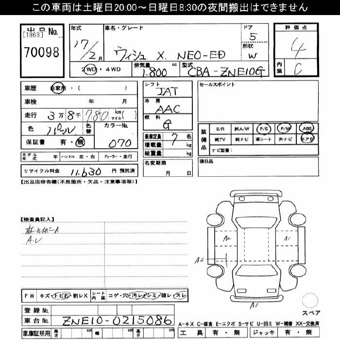 TOYOTA WISH - лот 70098