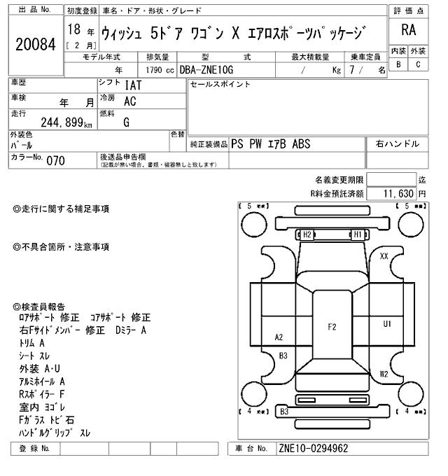 TOYOTA WISH - лот 20084