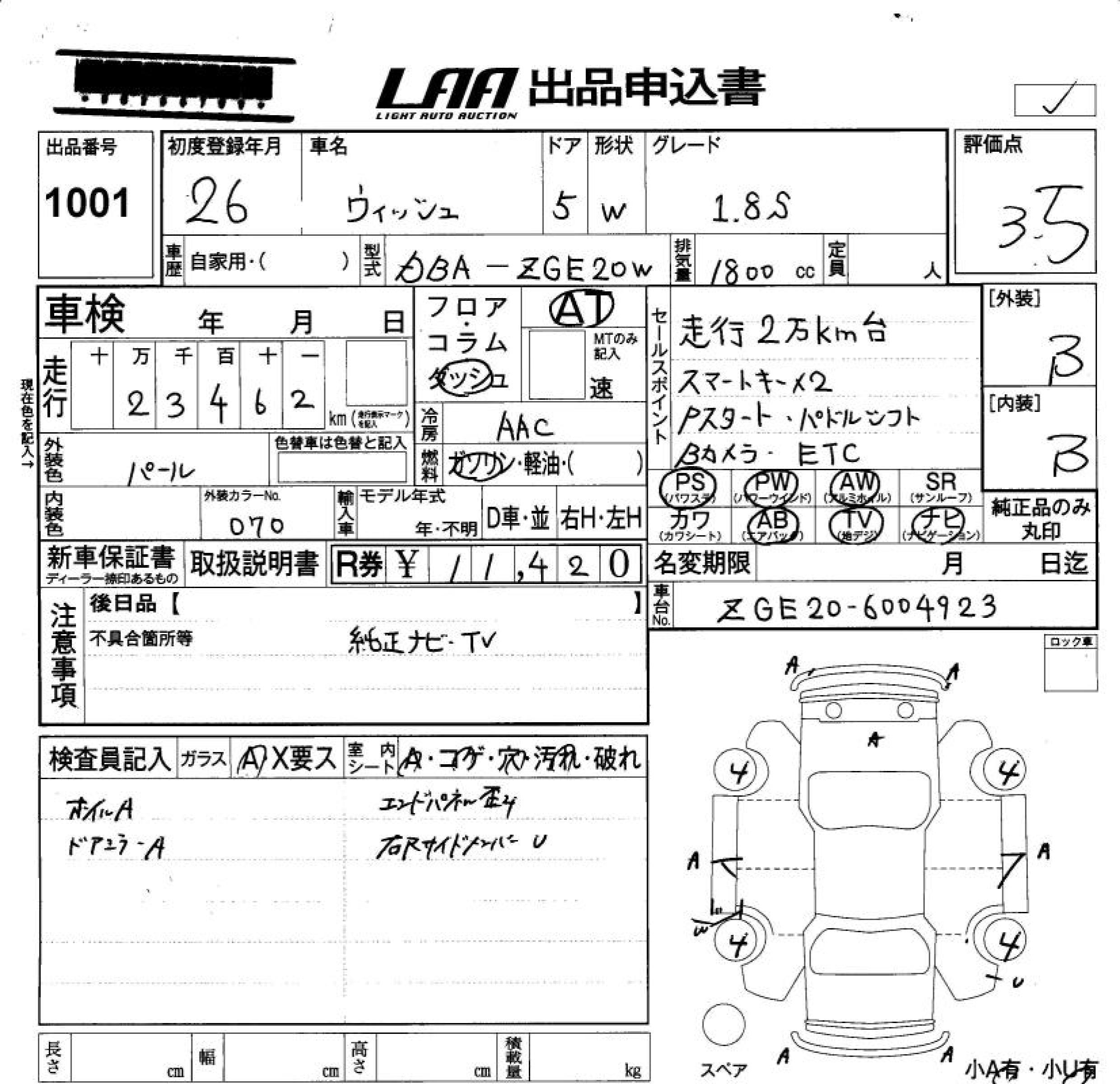 TOYOTA WISH - лот 1001