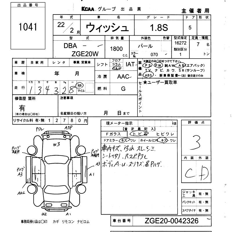 TOYOTA WISH - лот 1041