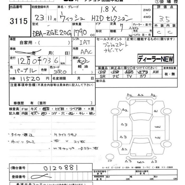 TOYOTA WISH - лот 3115