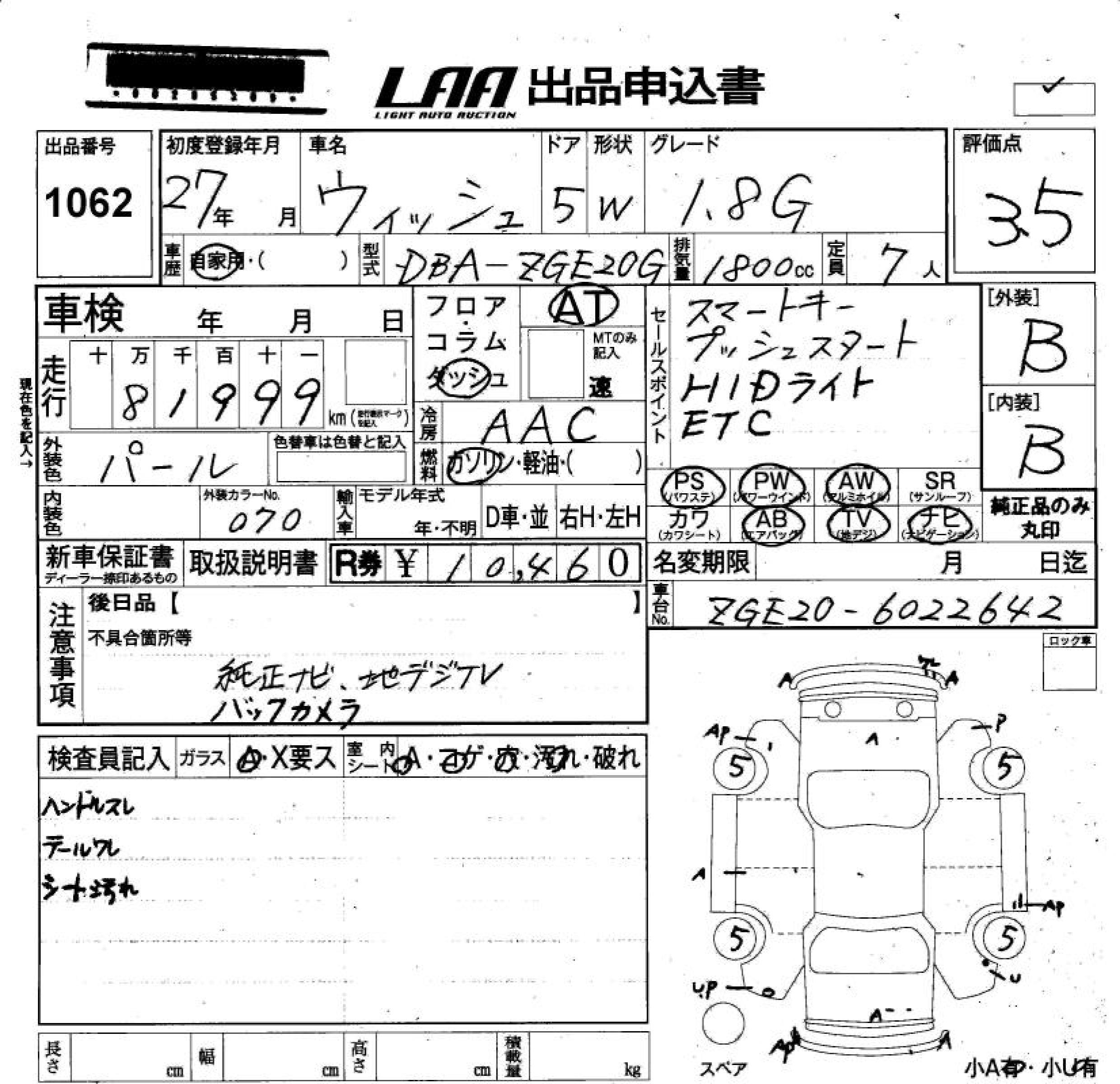 TOYOTA WISH - лот 1062