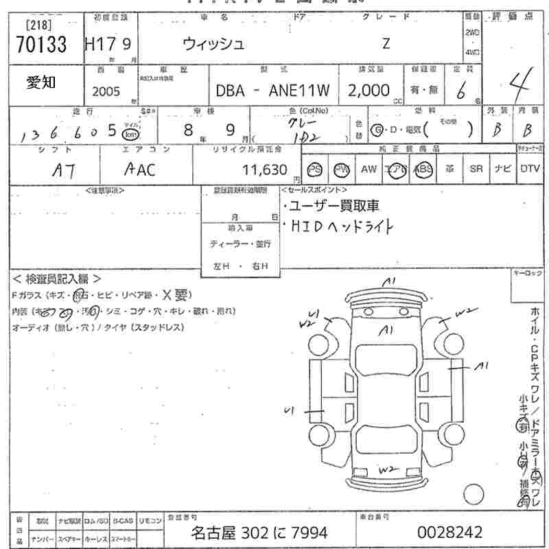 TOYOTA WISH - лот 70133