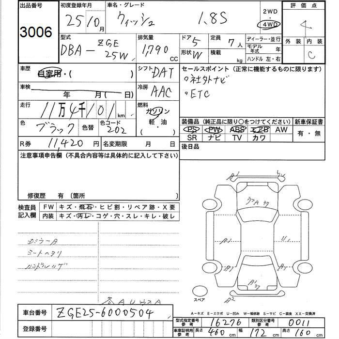 TOYOTA WISH - лот 3006