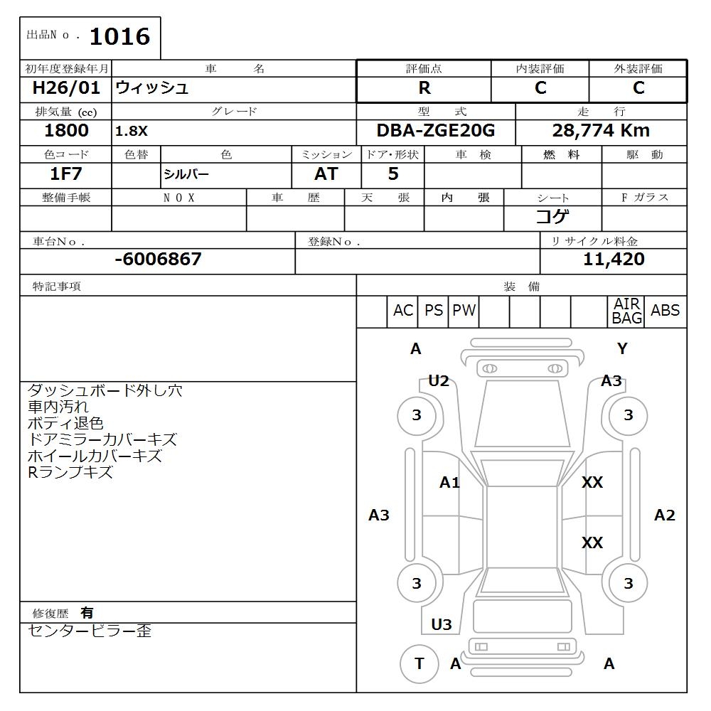 TOYOTA WISH - лот 1016