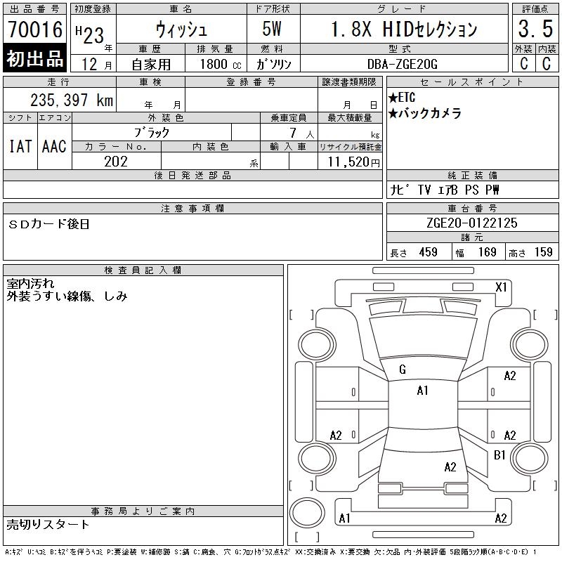 TOYOTA WISH - лот 70016