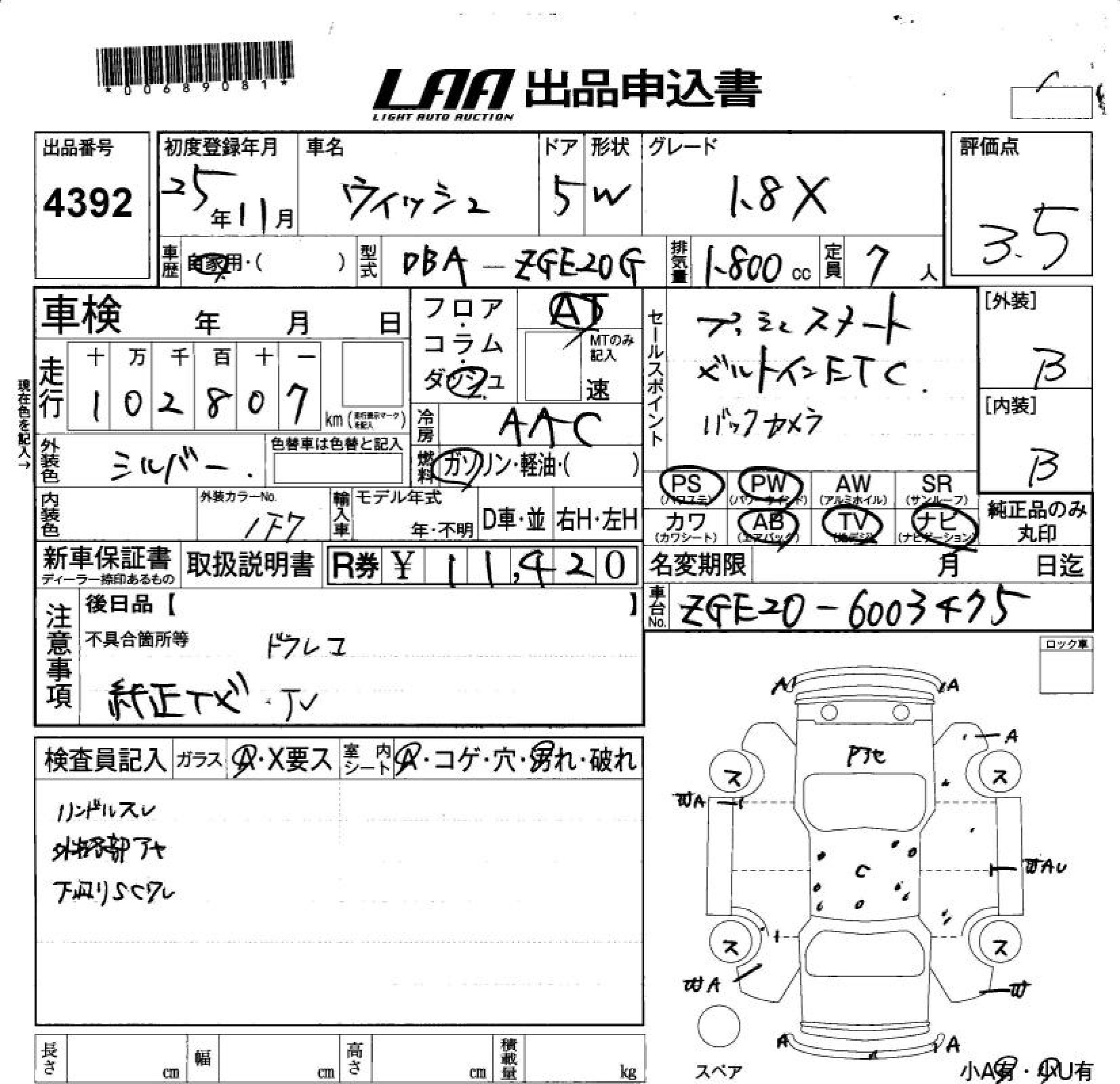 TOYOTA WISH - лот 4392