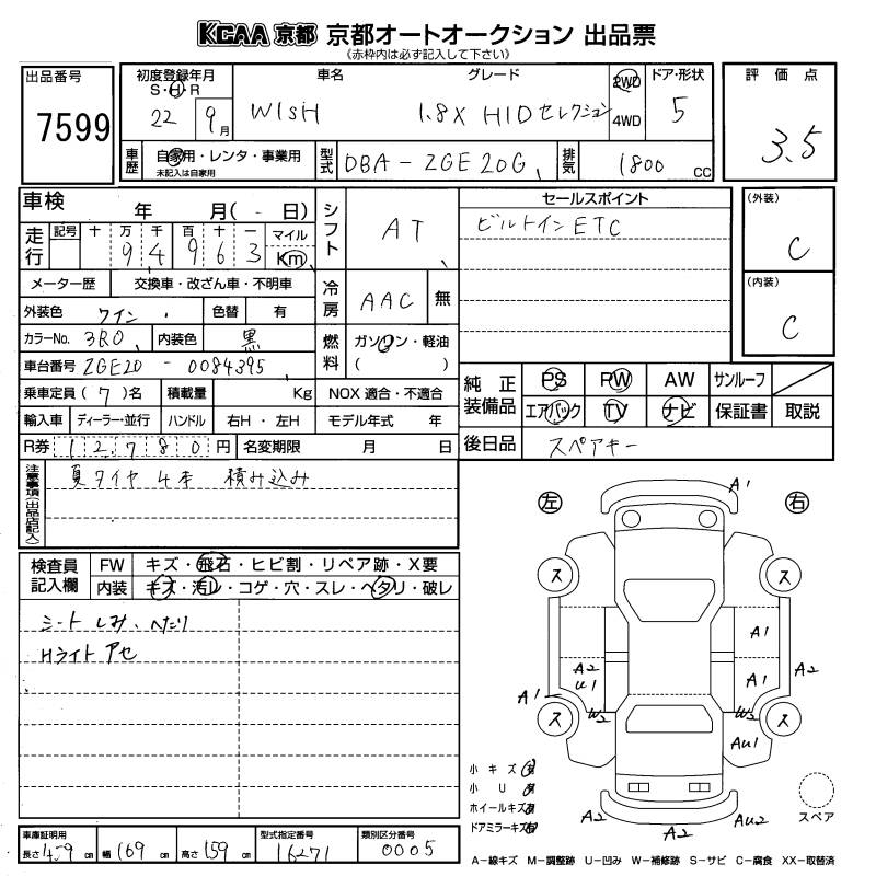 TOYOTA WISH - лот 7599