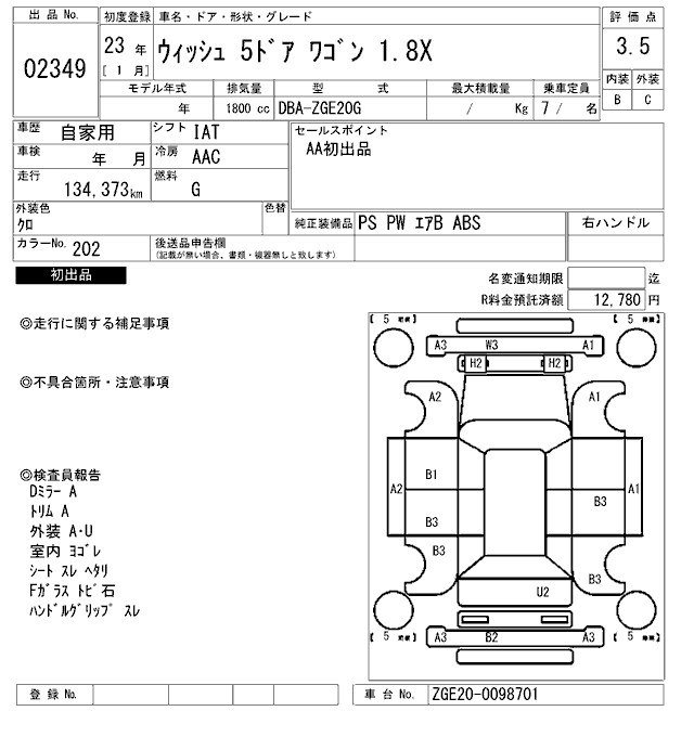 TOYOTA WISH - лот 2349