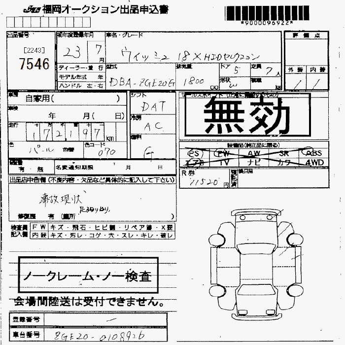 TOYOTA WISH - лот 7546