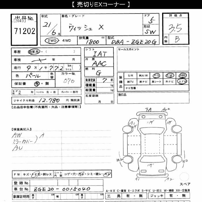TOYOTA WISH - лот 71202