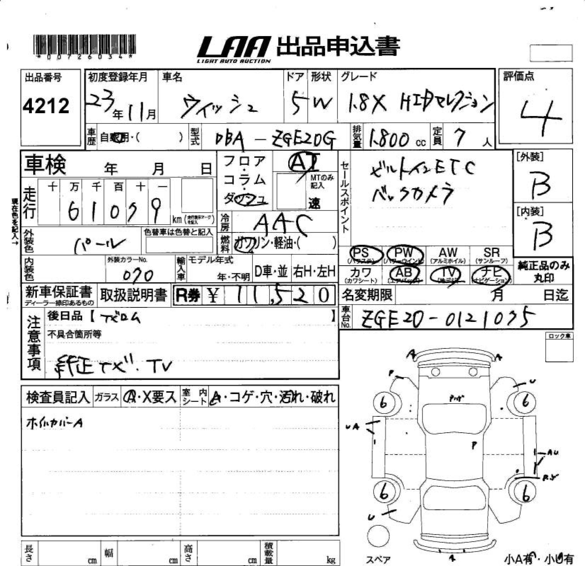 TOYOTA WISH - лот 4212