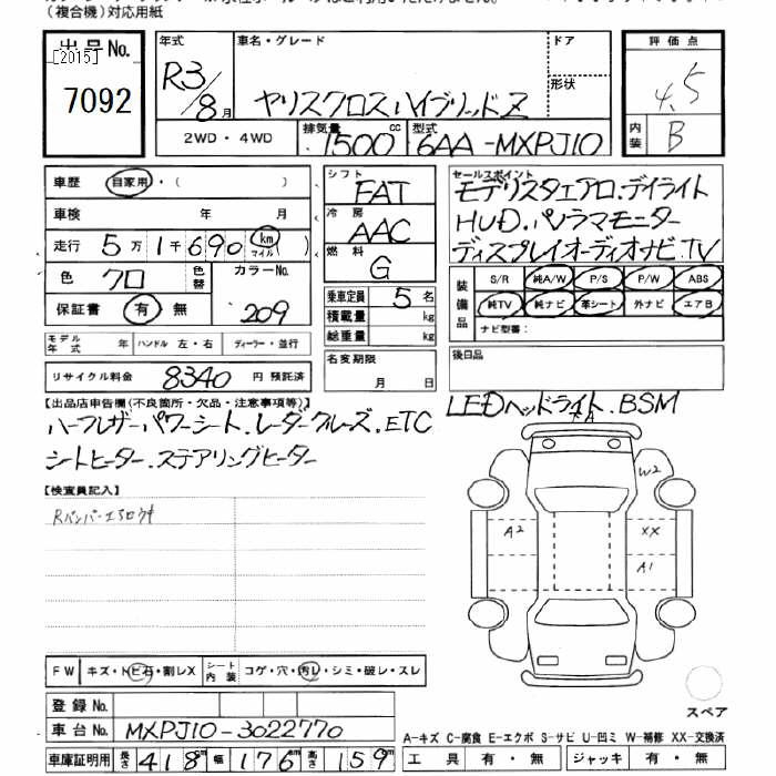 TOYOTA YARIS CROSS HYBRID Z - лот 7092