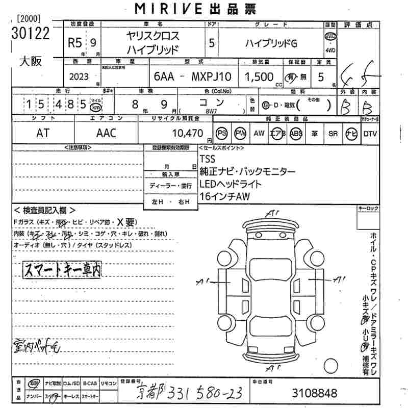TOYOTA YARIS CROSS HYBRID G - лот 30122