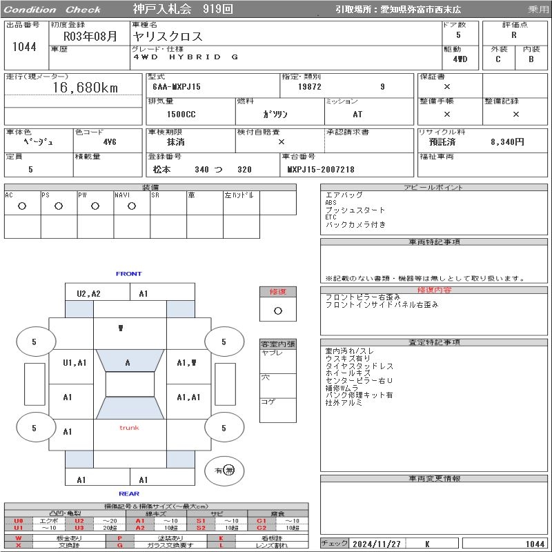 TOYOTA YARIS CROSS - лот 1044