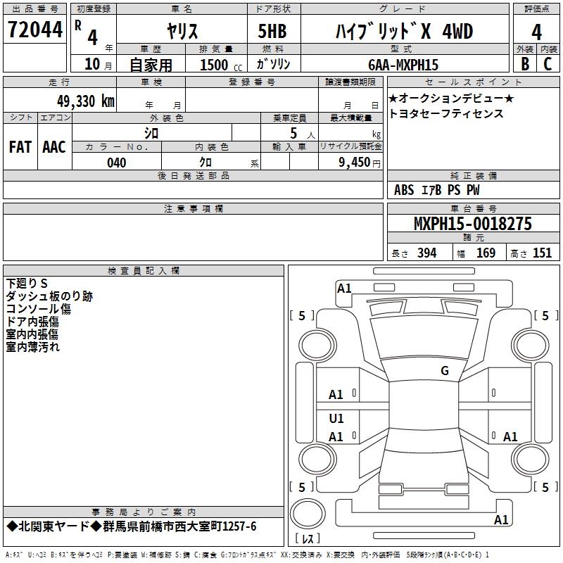 TOYOTA YARIS HYBRID X 4WD - лот 72044