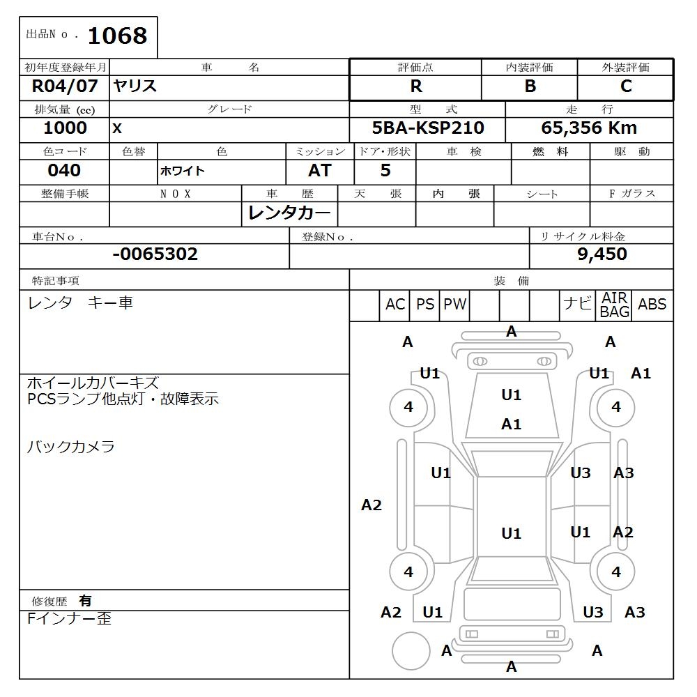 TOYOTA YARIS X - лот 1068