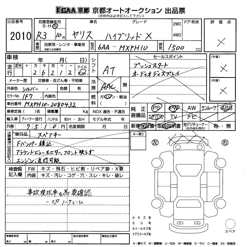 TOYOTA YARIS HYBRID X - лот 2010