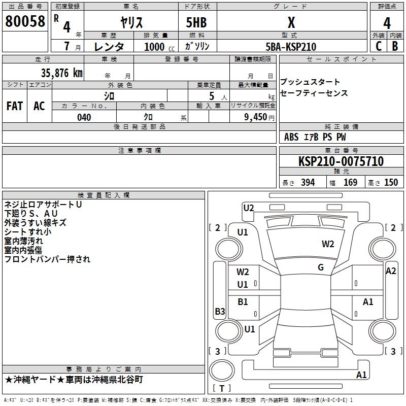 Оборудование: PS P 2 подушки безопасности ABS депозит уплачен 9,450 иен