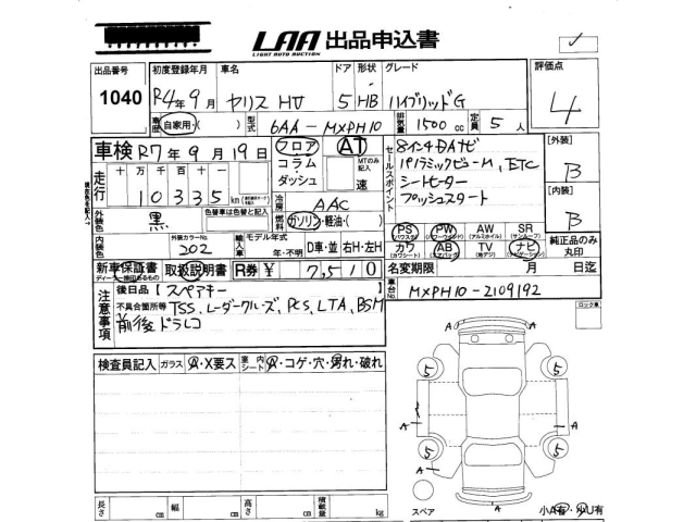 TOYOTA YARIS - лот 1040