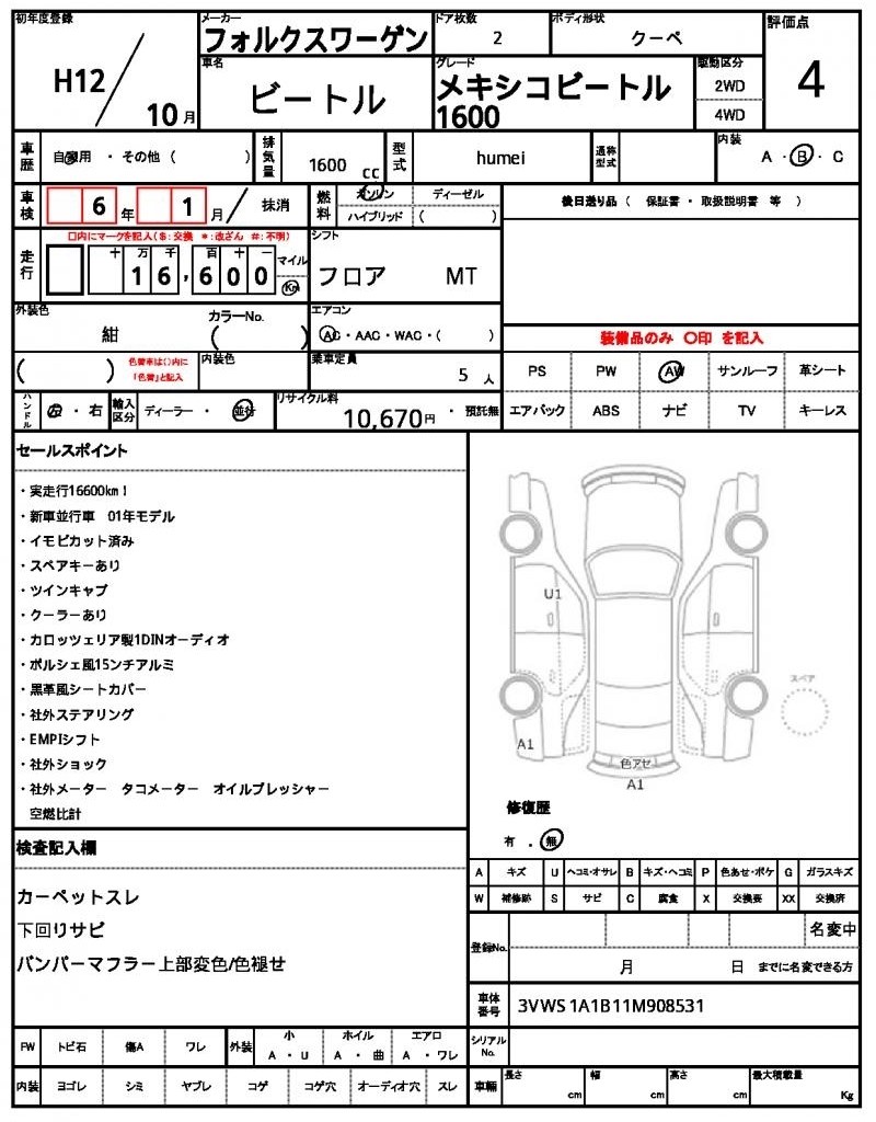 VOLKSWAGEN BEETLE - лот 42278