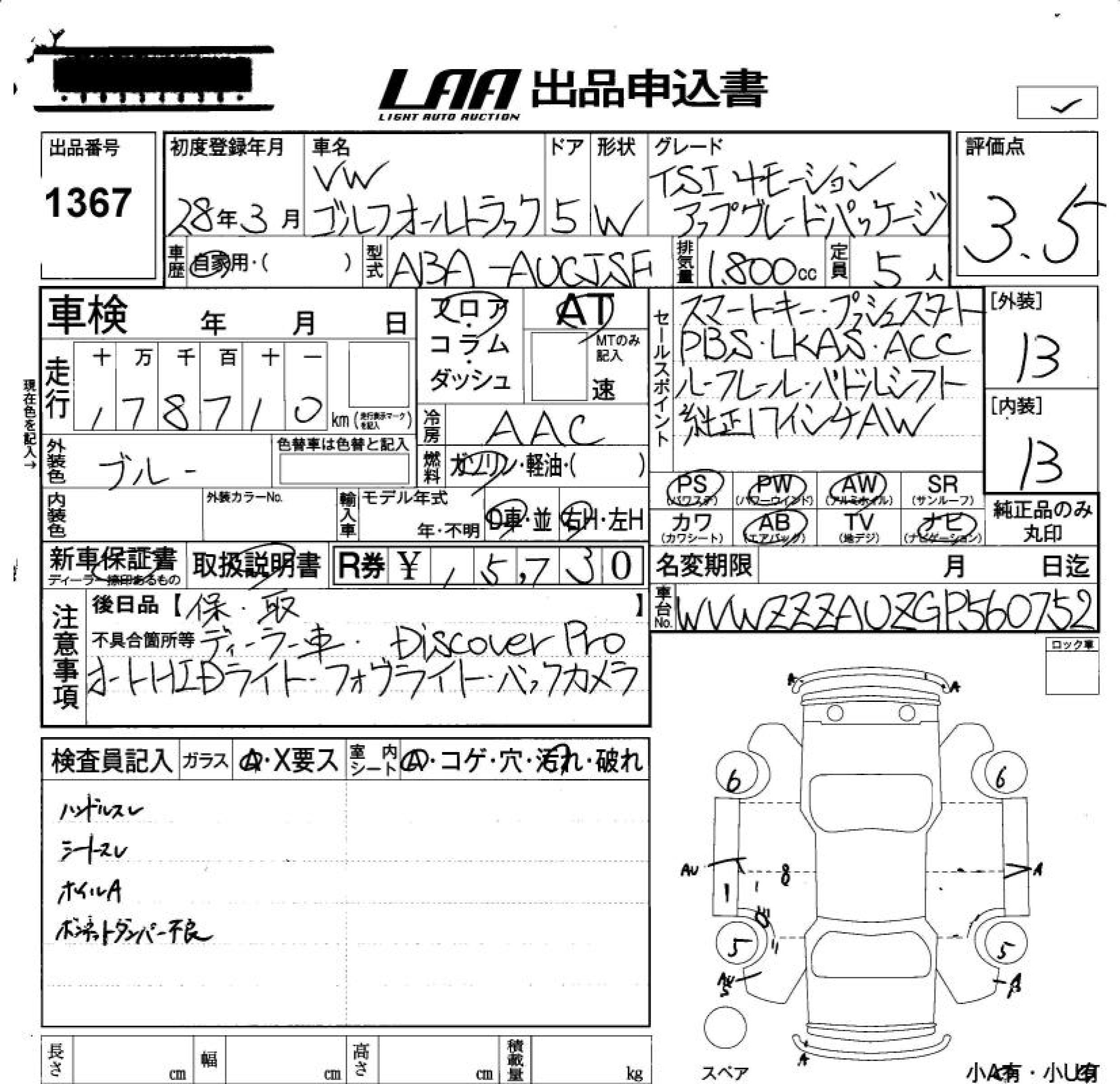 VOLKSWAGEN GOLF ALLTRACK - лот 1367