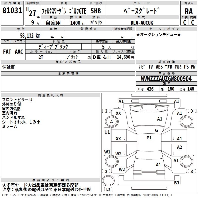 VOLKSWAGEN GOLF GTE - лот 81031