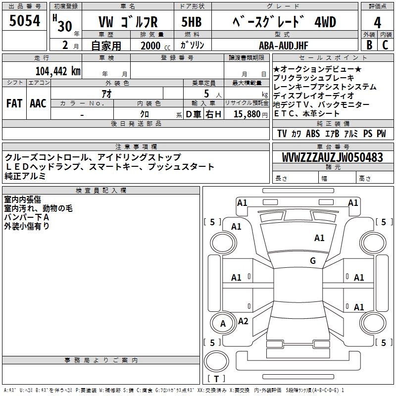 VOLKSWAGEN GOLF R - лот 5054