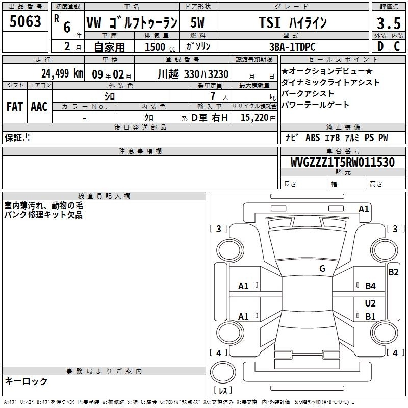 VOLKSWAGEN GOLF TOURAN - лот 5063