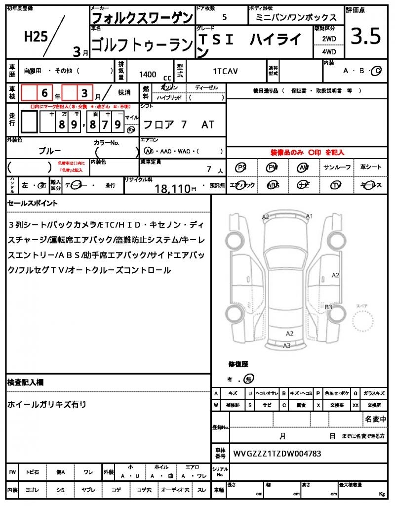 VOLKSWAGEN GOLF TOURAN - лот 49863