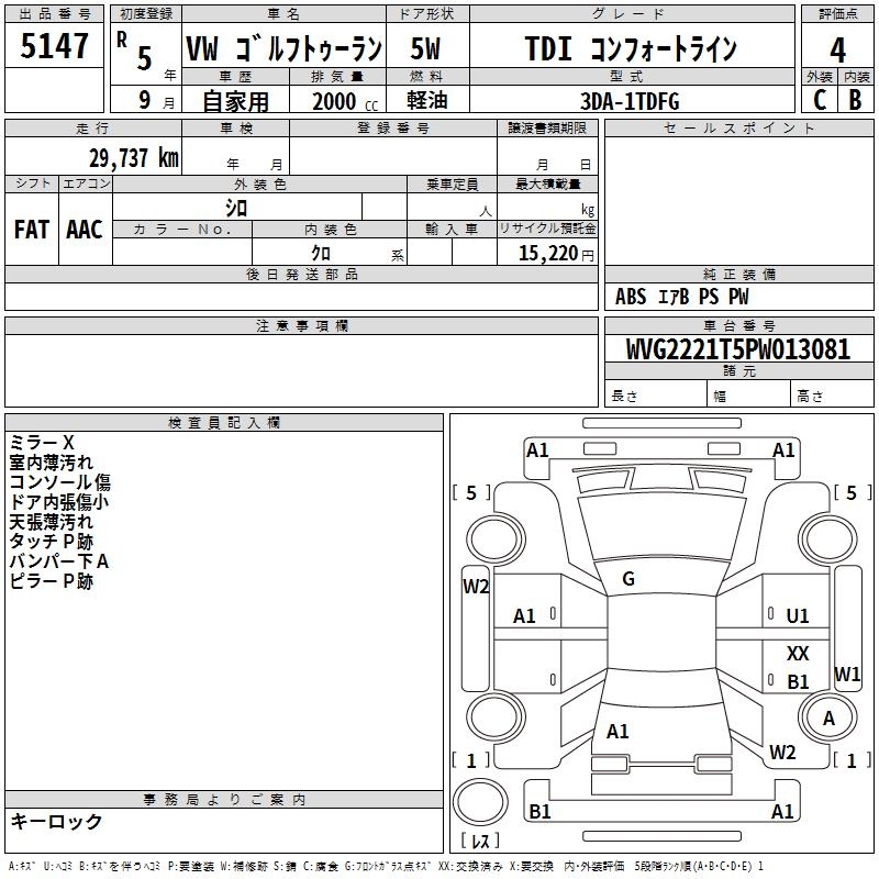 VOLKSWAGEN GOLF TOURAN - лот 5147