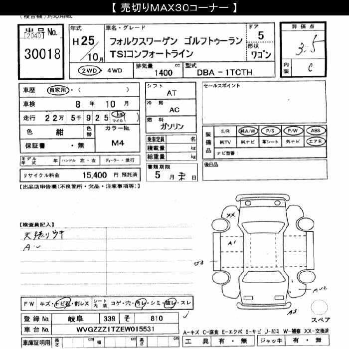 VOLKSWAGEN GOLF TOURAN - лот 30018