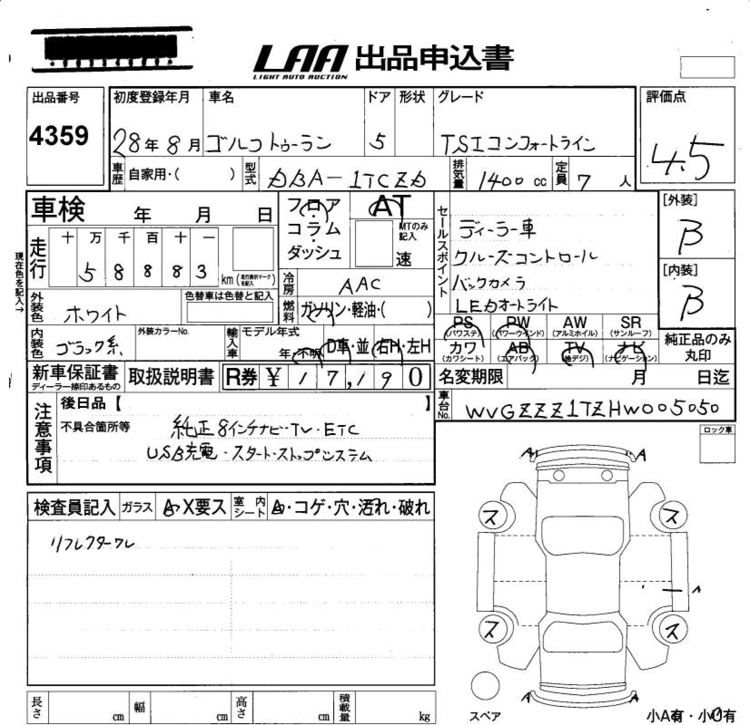 VOLKSWAGEN GOLF TOURAN - лот 4359
